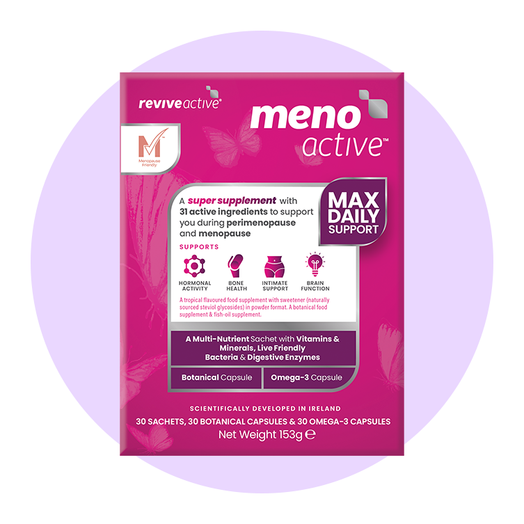 Award-winning, holistic, three-in-one menopause support in a tasty powdered supplement and capsules, with vitamins, minerals, digestive enzymes and omega-3. Revive Active Meno Active, £44.95 (30 sachets & capsules), reviveactive.com